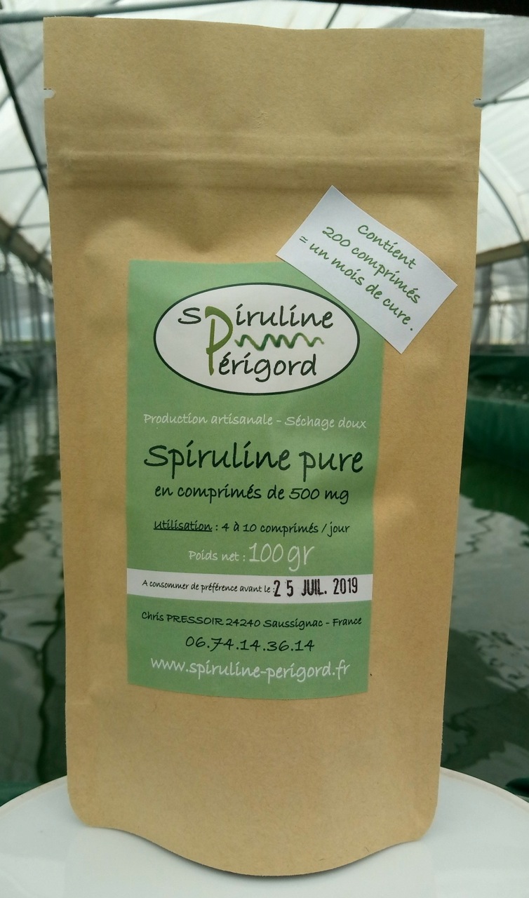 100% de spiruline, sans colorant, ni conservateur.